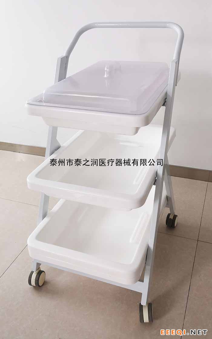 由一次壓模成型的高分子托盤、全鋼烤漆車體、靜音腳輪組成,具有耐腐蝕、不沾水、車行順暢、取放方便等優(yōu)點(diǎn);